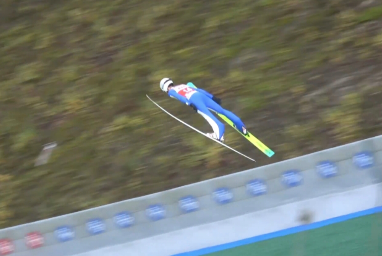 Japończyk nie miał sobie równych już w pierwszej serii. Przyłożył 144m, a „tylko” 3.8pkt przewagi nad drugim Philippem Raimundem (131m) wynikało z bardzo niskich not za styl. Najlepszą trójkę uzupełniał na tym etapie Domen Prevc (135m), który tydzień temu próbował tu swoich sił podczas drugoligowych zmagań. W ścisłej czołówce mieliśmy dwóch Polaków – 6. Kacpra Tomasiaka (132m) i 7. Kamila Stocha (130.5m). Do drugiej serii awansowali też 13. Dawid Kubacki (120.5m) i 22. Piotr Żyła (126m). Słabiej wypadli 35. Wąsek (116m) i 44. Zniszczoł (114.5m).